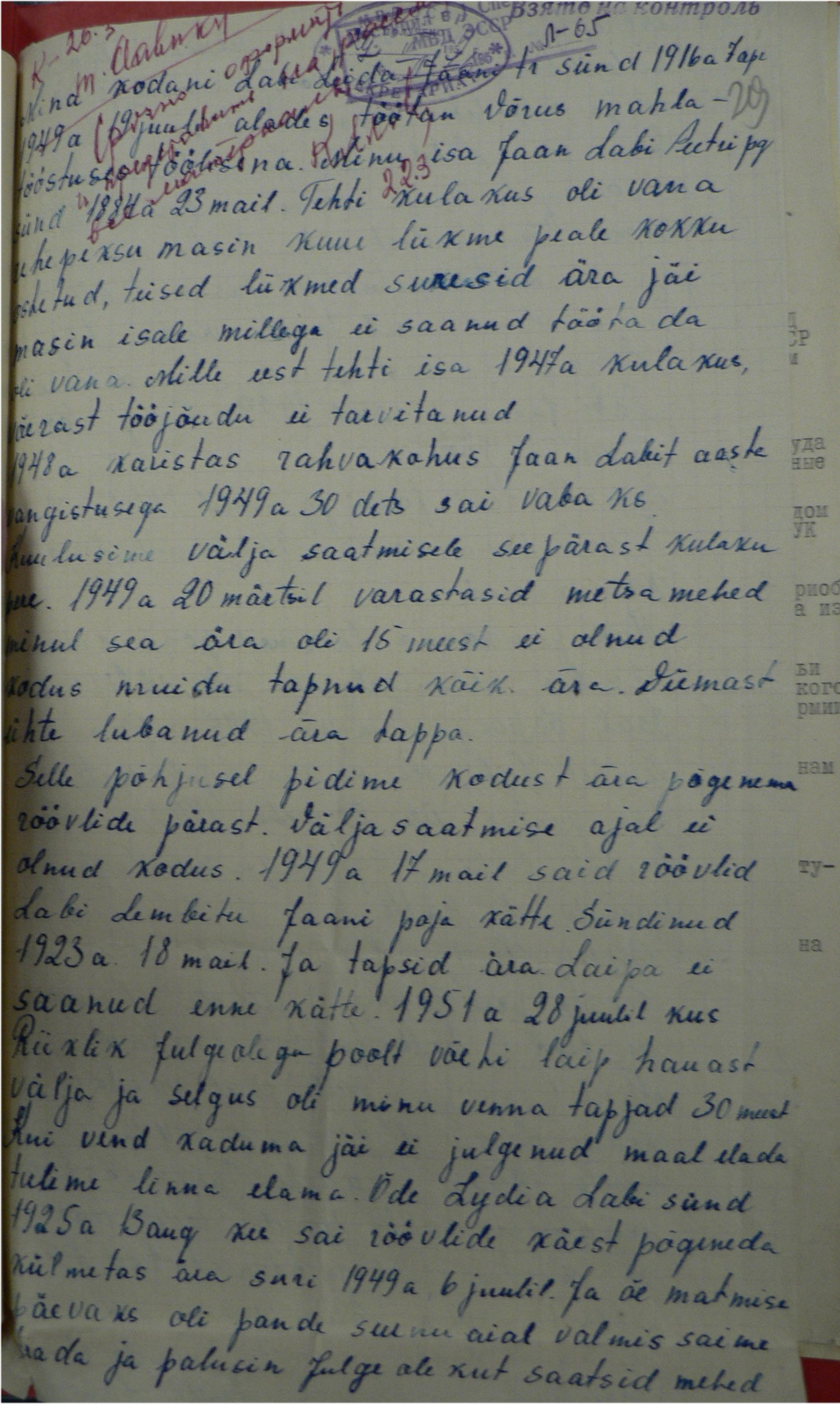 prokurörile, 20. aug. 1949 erikomisjonile, veelkord erikomisjonile 7. okt 1949 ning 6. jaan 1950 ka Moskvasse