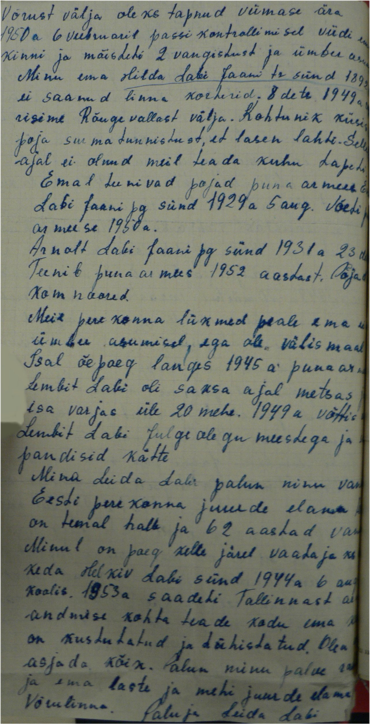 Juba 1949. a algul, pärast „kulakust“ pereisa vangistamist 1948. a laostavate maksude tõttu, mida ta maksta ei