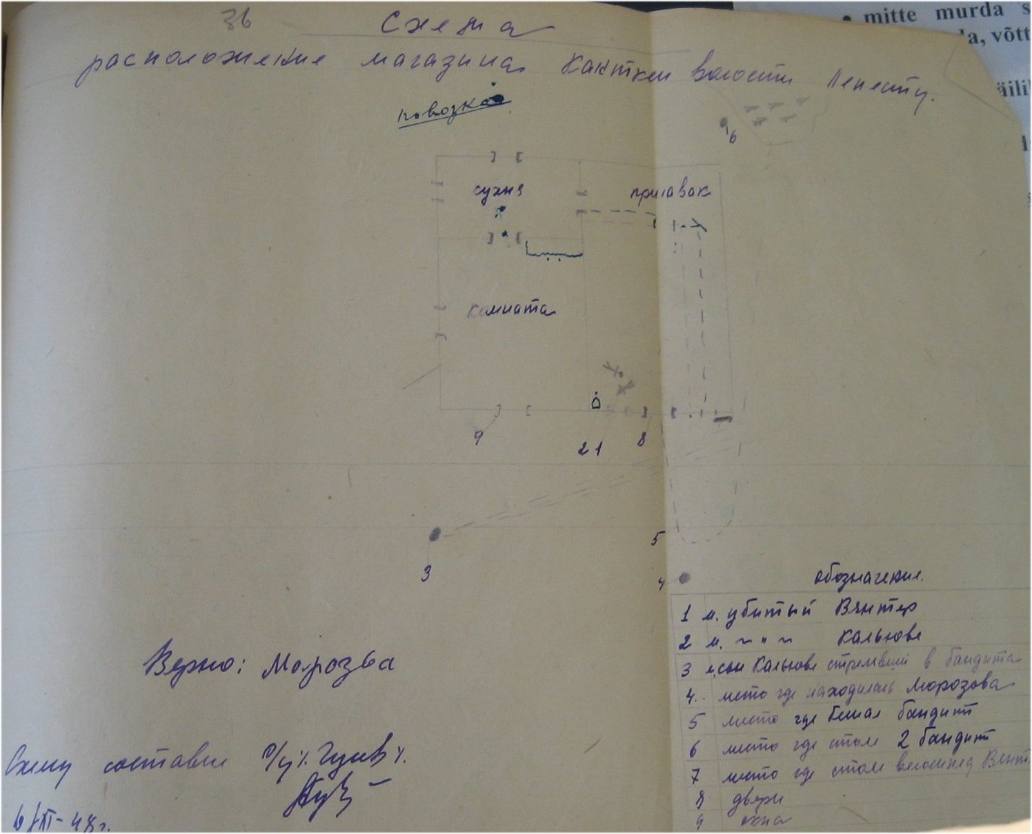Alma sõnul kutsuti ta kooperatiivi siseruumidesse kaasa. Seal asusid juba ees ihupesu väel poe juhataja Krjukov ning