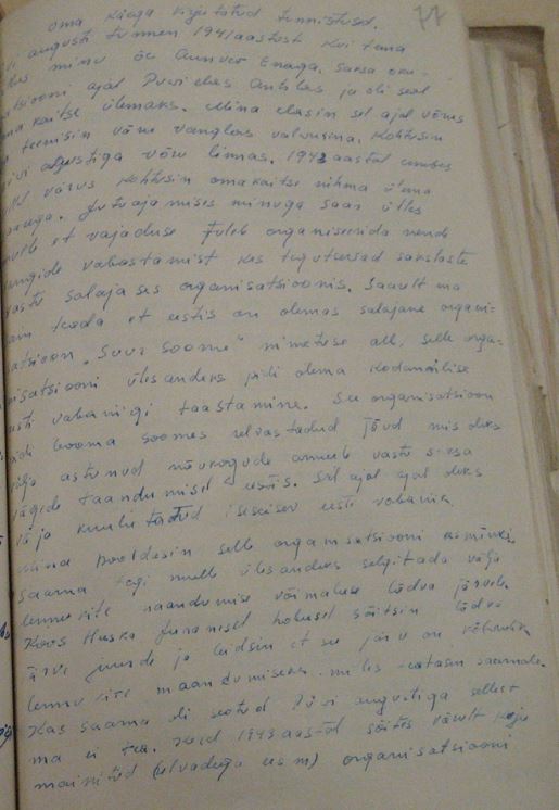 AA: Me võitlesime venelaste vastu, sest nad põletasid külasid. Meie plaan ei näinud ette hävitada taganevat Vene sõjaväge, vaid need isikud, kes jäid meie taludesse röövimise eesmärgil. Pärast vägede taganemist kavatsesime võtta võimu enda kätte ja kehtestada, õigemini taastada, kodanlik riigikord Eestis. See kavatsus ei teostunud, kuna sakslased tulid kohe peale. Taganemise ja sissetungi vahe oli äärmiselt lühike.