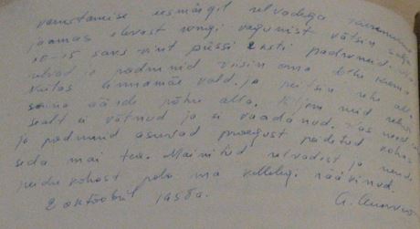 HR: Väeosas räägiti meile igal õhtul, kuidas nõukogude sõjaväelaste peredele on ette nähtud erinevad privileegid, aga kui mu naine mind Tallinnas külastas, siis rääkis ta mulle, et mingeid soodustusi tal ei ole, samas tuli vallavõimuriks mingi hullumeelne, kes käsutas ta elama sealauta, viskas ta kodust välja võttis temalt ära kõik mis talle kuulus.