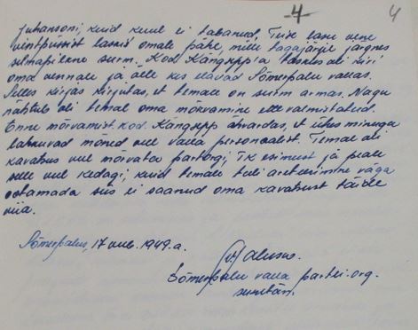 Partorg Teplenkov Jaan Linnamäelt teatab juulis 1946: